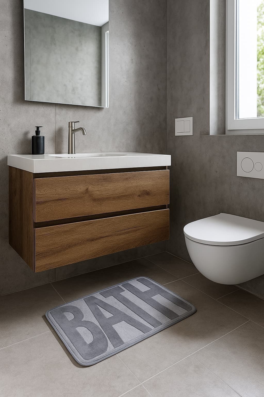 Haz de tu baño un lugar más acogedor y funcional con esta elegante alfombra gris, que se adapta a diferentes estilos decorativos, aportando un toque moderno y minimalista. Añade confort y seguridad a tu rutina diaria con esta solución práctica y estilizada.