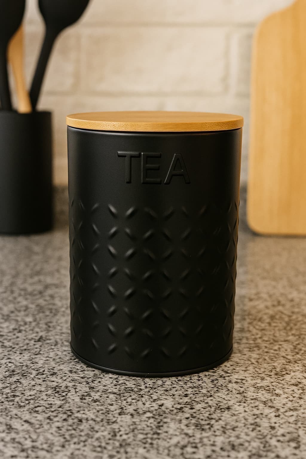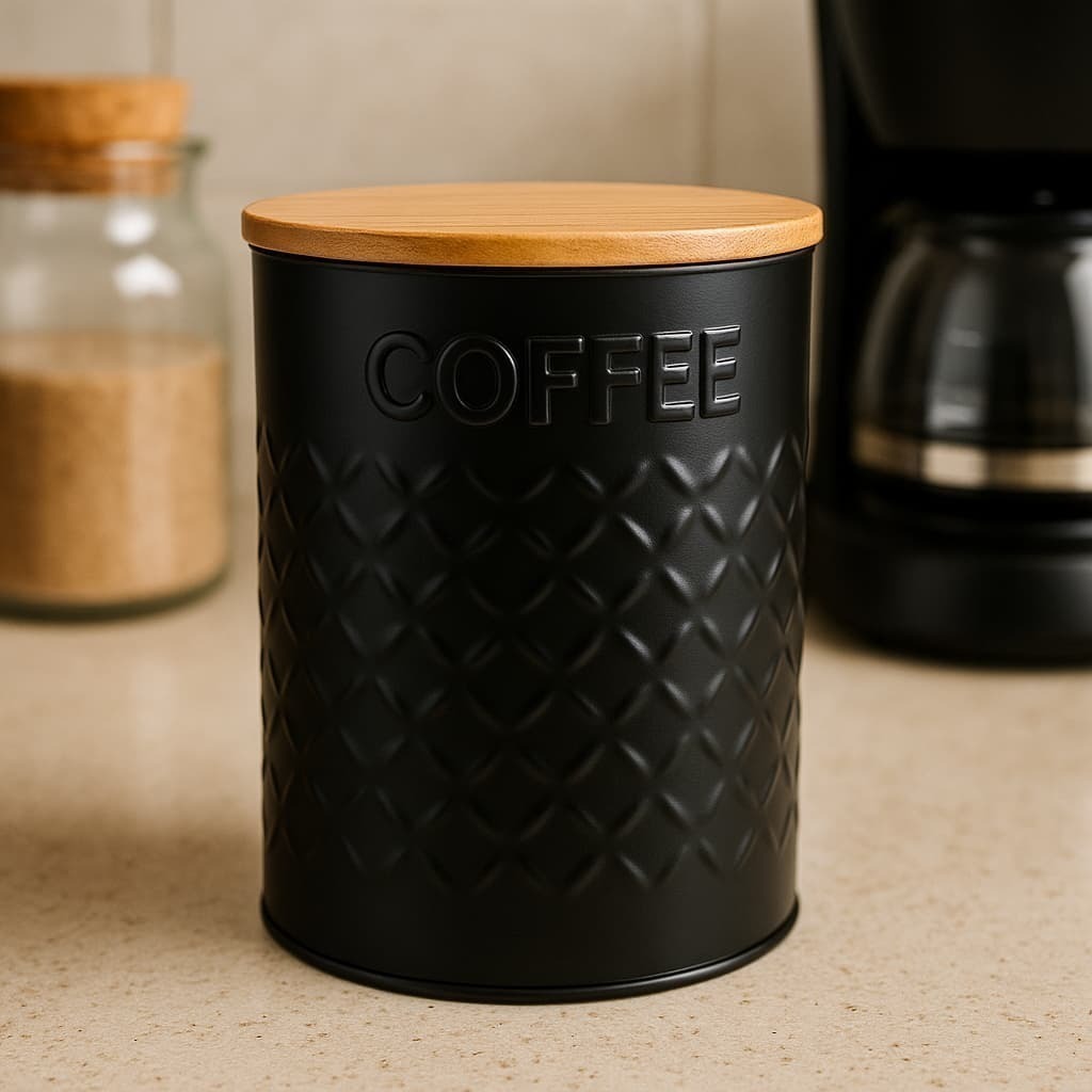 Fabricado en una combinación de metal negro y tapa de bambú, este contenedor aporta un toque contemporáneo y natural a tu hogar. La tapa de bambú permite un cierre seguro, asegurando que tus productos permanezcan a salvo de la humedad y el deterioro. Con un solo envase, puedes disfrutar de un producto versátil que se adapta a diversas necesidades de almacenamiento.